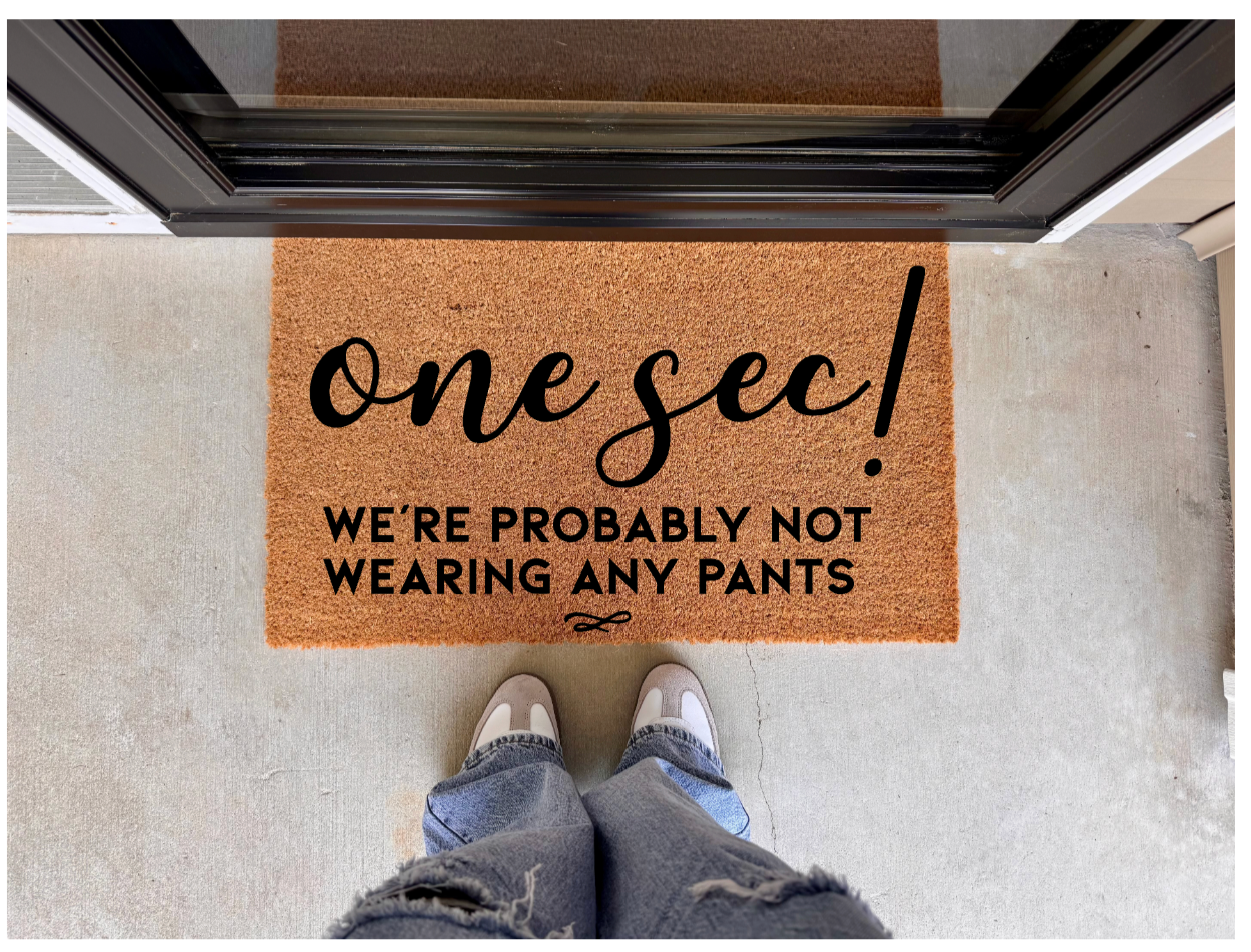 This doormat is for those who need a moment to get ready. The "One Sec!" design gives a friendly reminder to not rush while getting dressed. Enjoy the convenience and discretion this doormat provides.