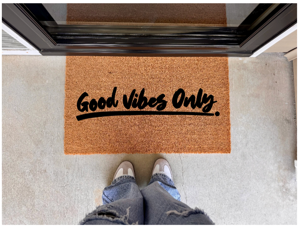 Welcome guests into your home with positivity and good vibes with our Good Vibes Only Doormat. This durable doormat is not only stylish, but also serves as a reminder to spread positivity and kindness. Made with high-quality materials, this doormat is sure to make a lasting impression on all who enter your home.