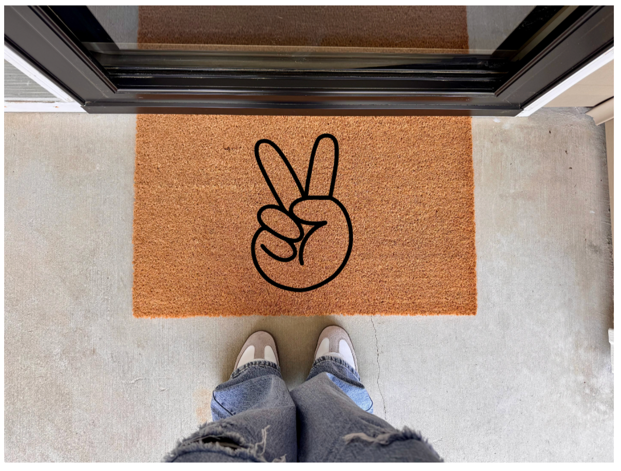 Welcome your guests with peace and style with our Peace Sign Doormat. This unique doormat features a classic and recognizable symbol of peace, providing a warm and inviting touch to any doorstep. Made with durable materials, this doormat is not only eye-catching but also functional, effectively trapping dirt and moisture to keep your floors clean.