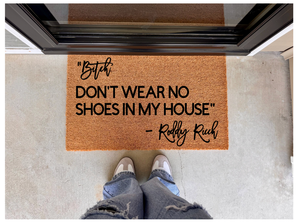 Welcome your guests with style and personality with our Roddy Ricch doormat. Made with durable materials, its unique design features the lyrics "bitch don't wear no shoes in my house" from the hit song by Roddy Ricch. Keep your floors clean and show off your love for music at the same time.