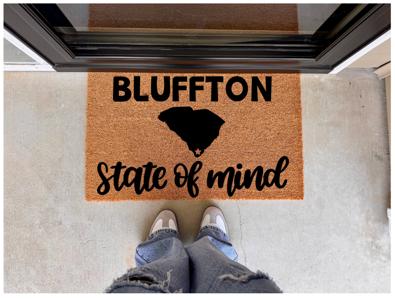Experience the charm and tranquility of small town life with the Bluffton State Of Mind Doormat. Made for the proud residents of this charming South Carolina town, this doormat pays homage to the town's history. Step into a state of relaxation every time you come home.