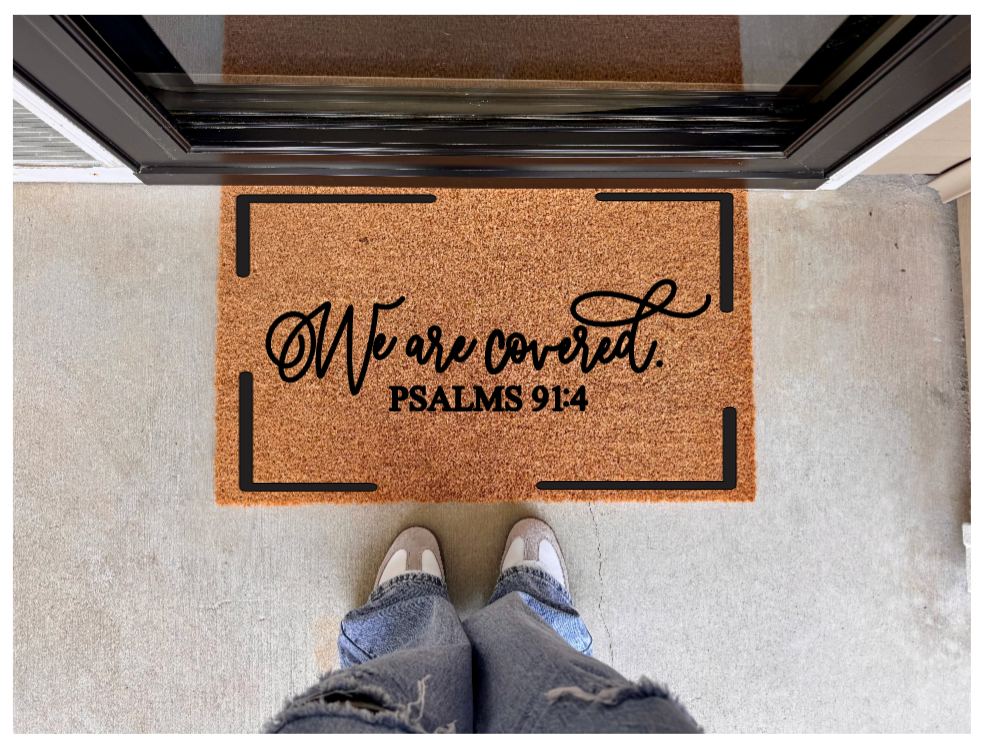 Our We Are Covered Doormat features a biblical promise of divine protection, reminding you that you are always protected. The perfect addition to your home, this doormat is not only functional but also serves as a daily reminder of God's love and care.